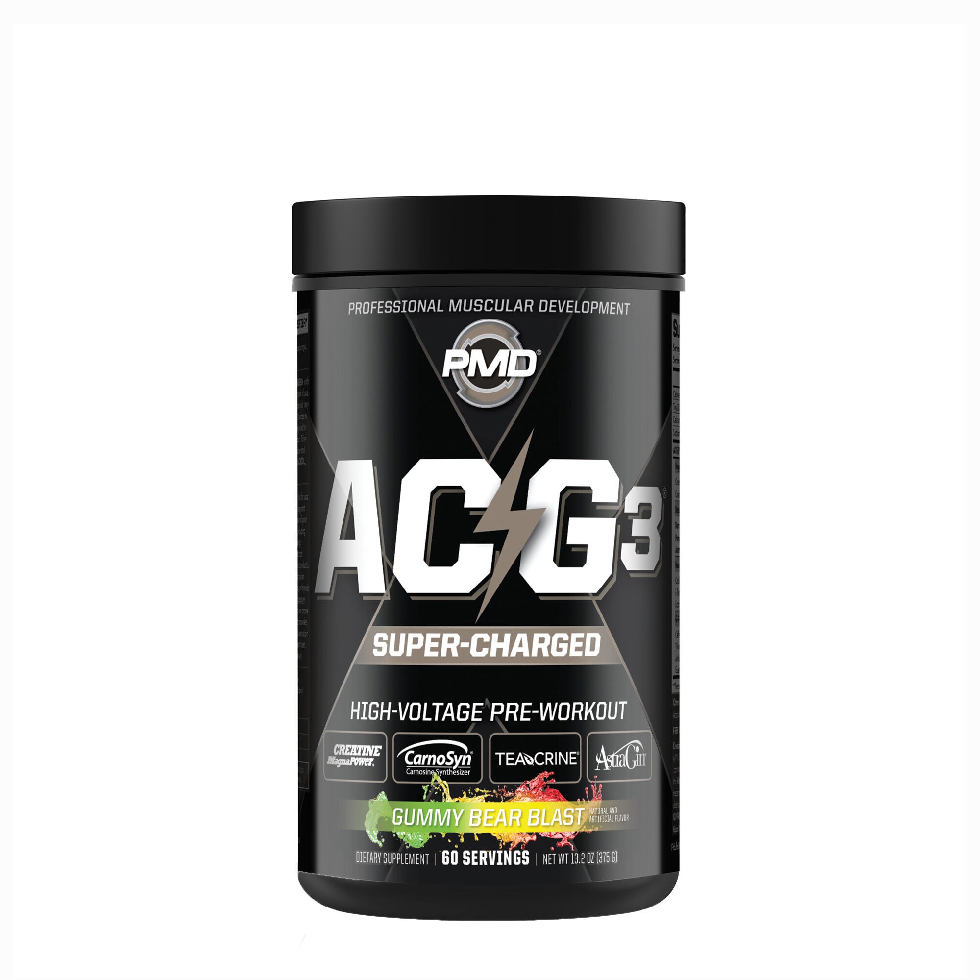 Amazon Com Pmd Sports Acg3 Supercharged Pre Workout Powerful Strength High Energy Maximize Mental Focus Endurance And Optimum Workout Performance For Men And Women Gummy Bear Blast 60 Servings Health Household